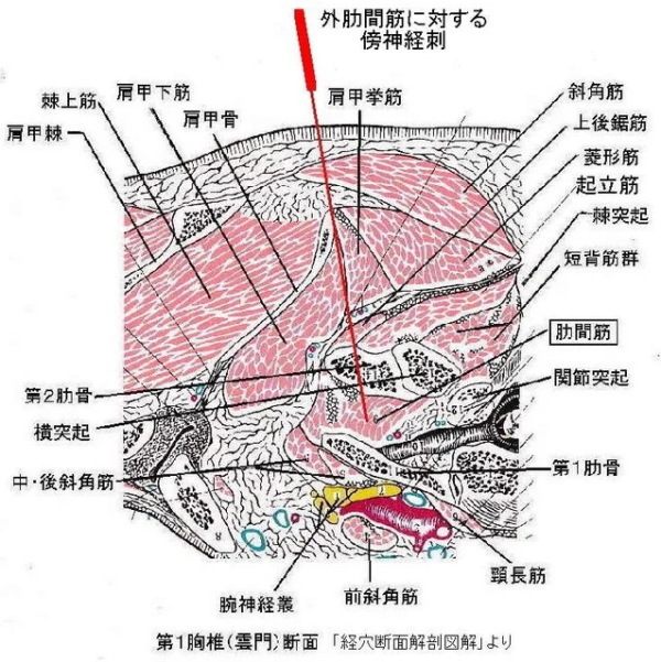 以後痛みが長引くようであれば局所麻酔薬によって神経をブロックさせる方法もとられます。注射は肋骨のすぐ下を走る肋間神経に針を刺して局所麻酔薬を注入しますが、神経の炎症がある場合はステロイドを混ぜることがあります。